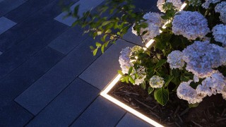 Lighting on steps not only makes them safer to use in the darkness, it brings out their structural contribution to the garden design.